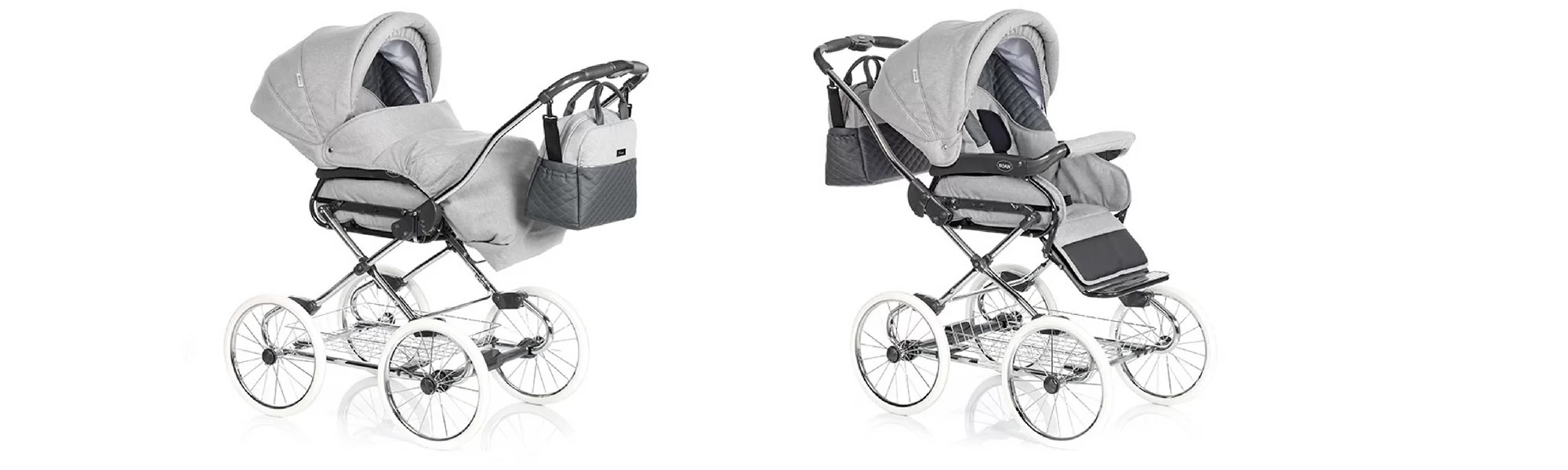 Klapvognsdelen kan via et kliksystem lynhurtigt skiftes så barnet både kan sidde og kikke fremad eller også kan den vendes så barnet kikke ind mod dig selv.