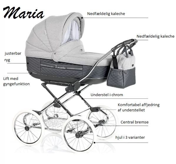 SPECIFIKATIONER:Solid og ventileret bund i barnevognskassenStellet fremstillet af let aluminium - dette gør vognen nemmere at pakke sammen og ligeledes at transportereTraditionelle lufthjul med blød affjedringDrejelige forhjul - de forreste hjul kan dreje 360 grader, hvilket gør manøvrering med vognen til en legJusterbar ryg i...